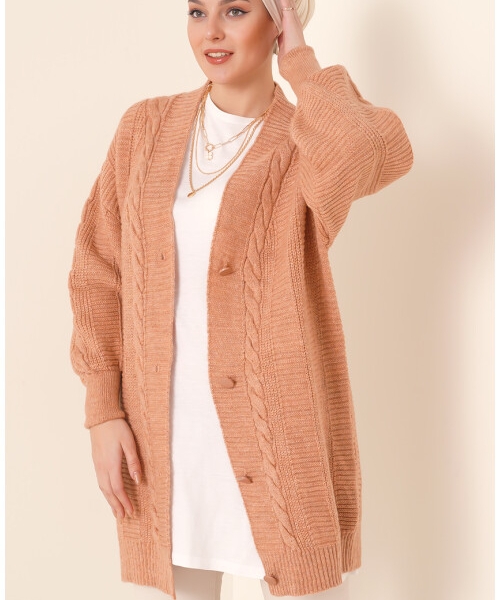 A soft and cozy long cardigan with stylish cable-knit details and button closure. A versatile layering piece for fall and winter, combining warmth and elegance for casual or chic outfits.