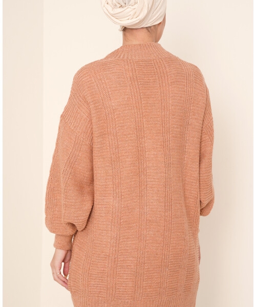 About this product Knitted salmon cardigan with buttons