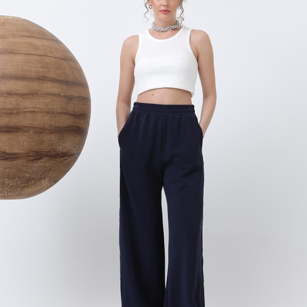 Informatii despre produs Темно-синие брюки с боковыми кнопками