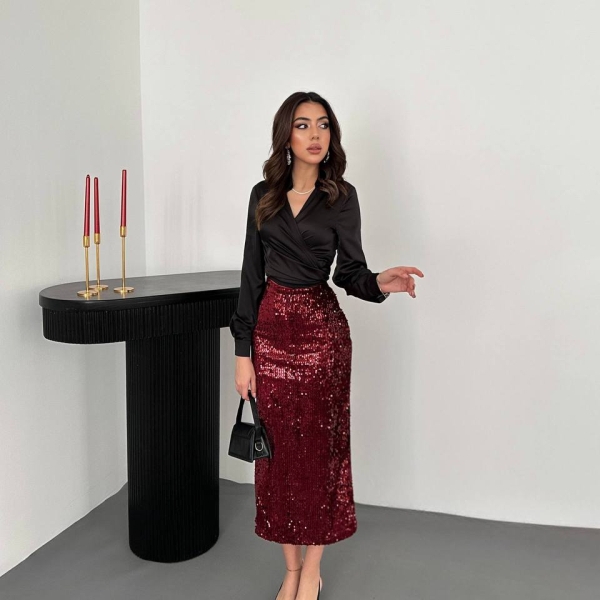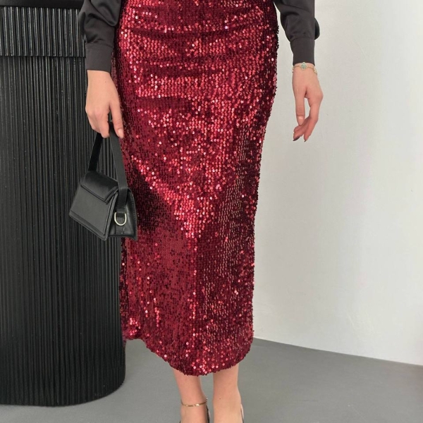 5. Fustă roșie strălucitoare cu paiete