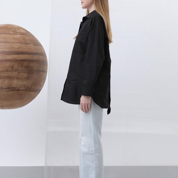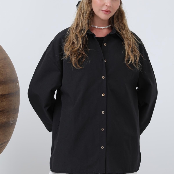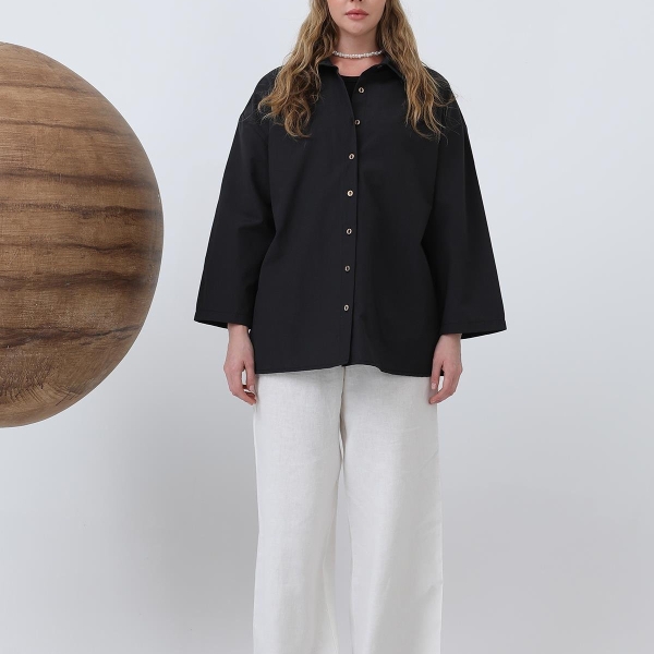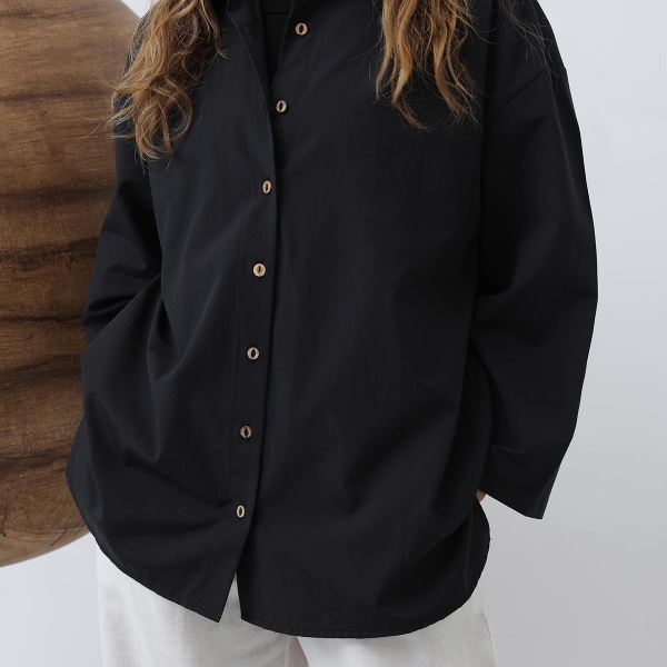 About this product Black oversized cotton shirt with buttons
