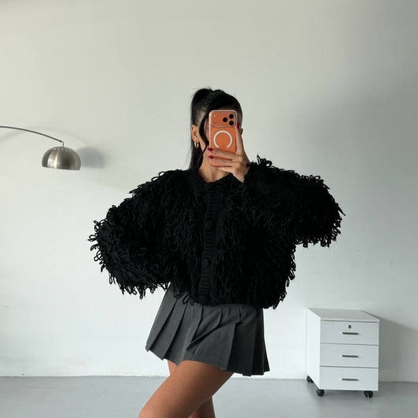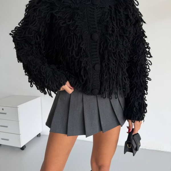 5. Черный трикотажный кардиган с фактурной бахромой