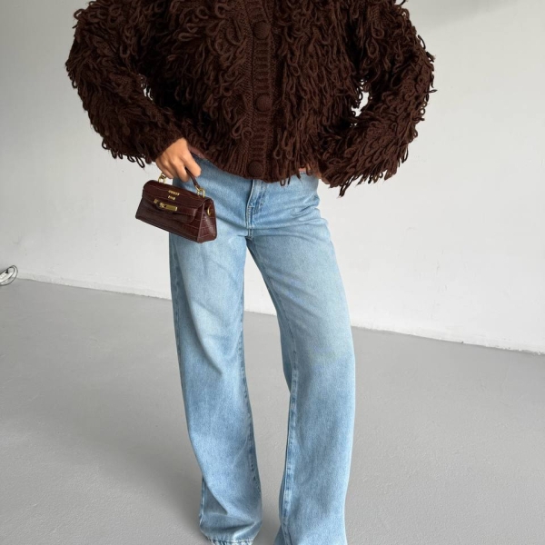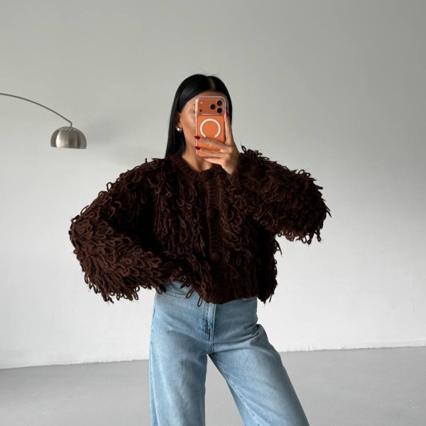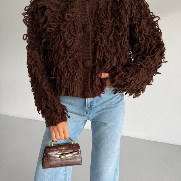 5. Коричневый трикотажный кардиган с фактурной бахромой