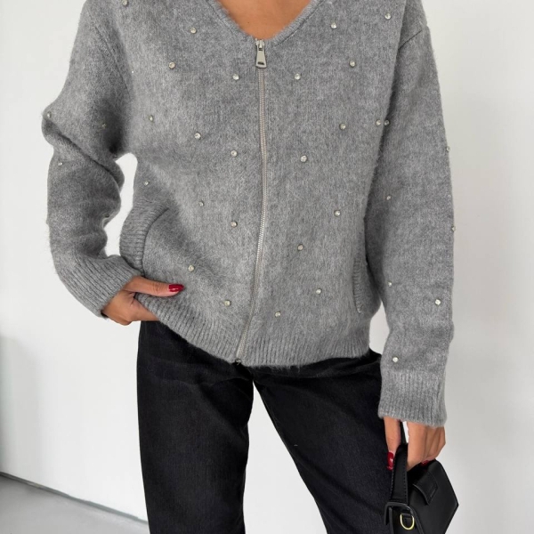 Informatii despre produs Серый кардиган на молнии с декоративными элементами