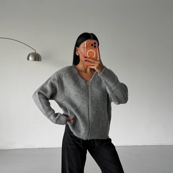 impresii despre Серый кардиган на молнии с декоративными элементами