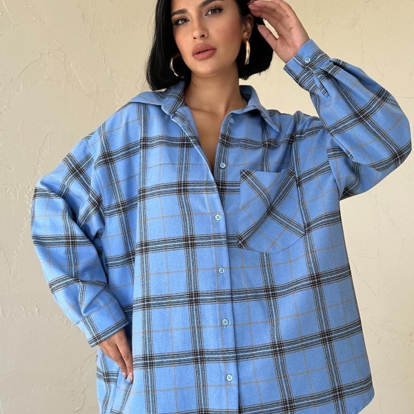5. Cămașă oversized în carouri albastre