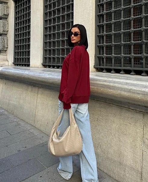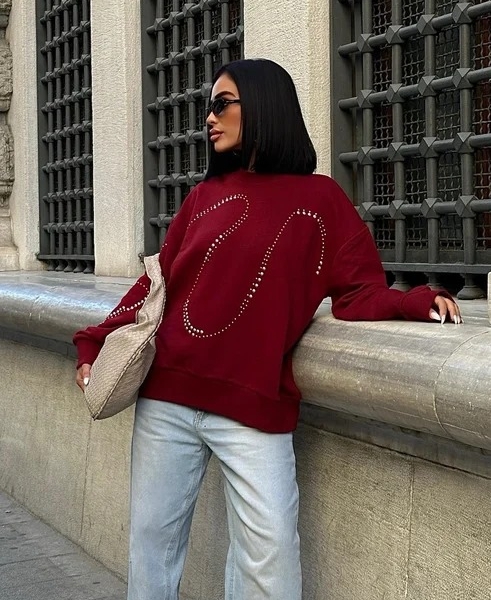 Impresii despre Hanorac Oversized Burgundy cu Aplicații Strălucitoare