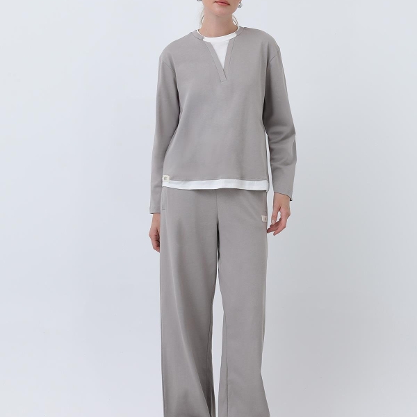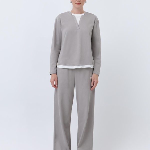 5. Hanorac gri basic cu inserții albe