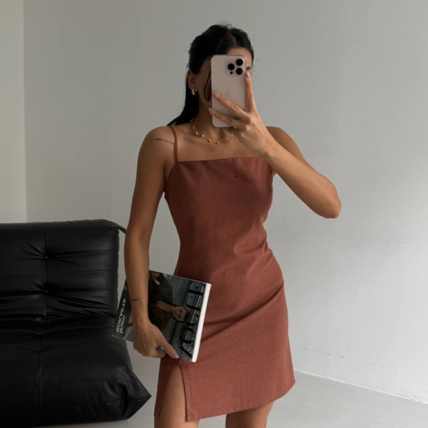 Мини-платье из 100% хлопка с тонкими бретелями и элегантным боковым разрезом. Лаконичный фасон делают его идеальным выбором для повседневных образов или вечерних выходов. Подходит как к босоножкам, так и к кедам.