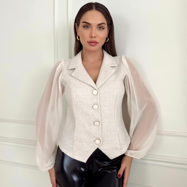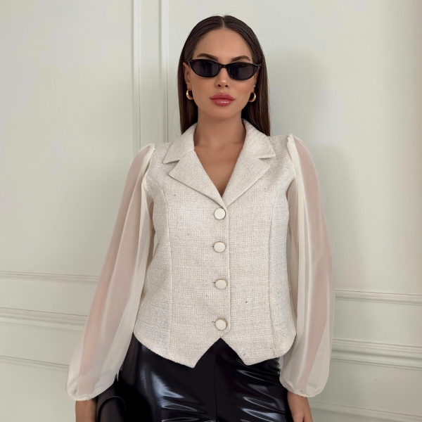 Informatii despre produs Кремовый жилет с рукавами из шифона и твидом