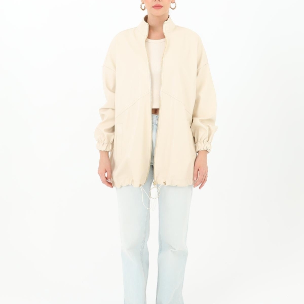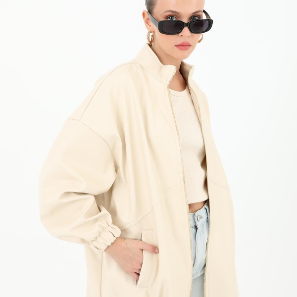 Informatii despre produs Бежевая куртка оверсайз из эко-кожи