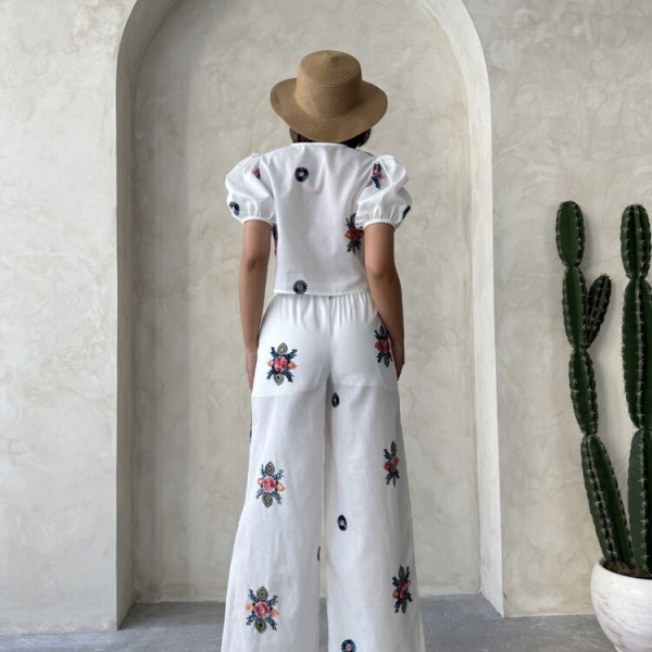 Impresii despre Pantaloni albi din voal cu broderie florală