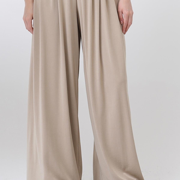 Women’s wide-leg pants made from a soft blend of polyester, modal and spandex – perfect for comfortable everyday outfits. The relaxed cut and elastic waist provide freedom of movement and all-day comfort. Thanks to the fluid fabric, these casual pants pair easily with basic T-shirts, tops or cozy sweaters. Modal wide-leg pants are versatile and ideal for lounging at home, casual walks or even relaxed office looks. Choose an essential piece that combines comfort and modern style.