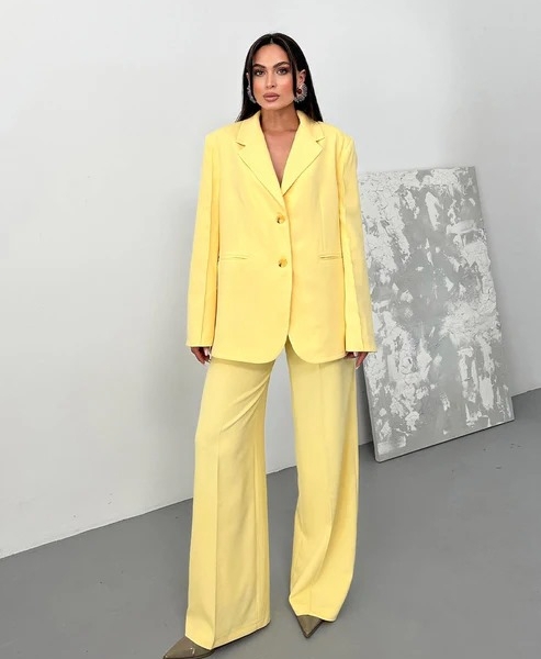 Pantaloni palazzo eleganți de damă, realizați din țesătură polyviscon confortabilă și rezistentă, cu croială dreaptă și talie medie. Designul versatil cu buzunare laterale și închidere cu fermoar și nasture îi face ideali atât pentru birou, cât și pentru ținute casual smart. Acești pantaloni completează cu stil orice combinație cu bluze, cămăși sau sacouri. Se asortează ușor și pun în valoare silueta prin linia lor fluidă și modernă.
