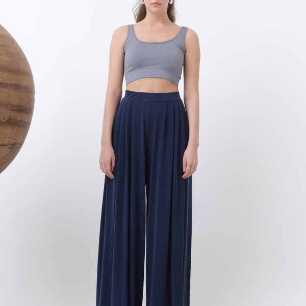 Impresii despre Pantaloni palazzo navy cu talie elastică