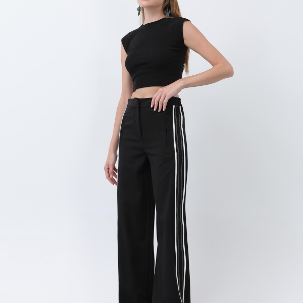 5. Женские черные брюки с боковыми полосами