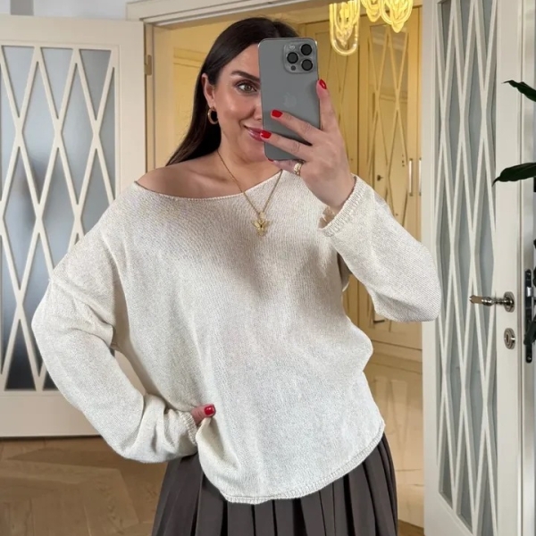 impresii despre Тонкий белый трикотажный свитер с круглым вырезом
