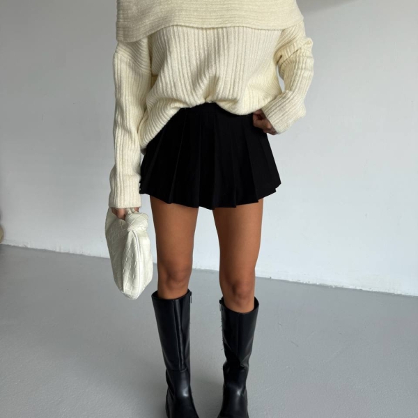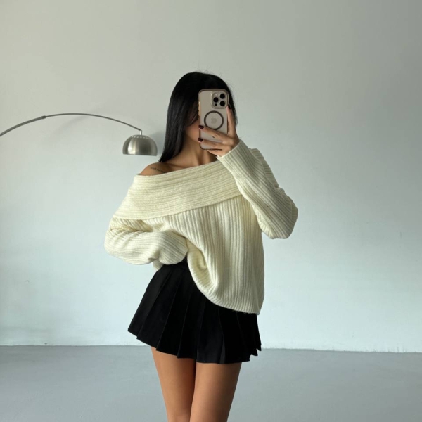 Adaugă o notă de eleganță și confort oricărei ținute cu acest pulover tricotat moale. Designul său modern prezintă un guler lărgit (tip off-the-shoulder) care permite purtarea stil cădere pe umeri, dezvăluind delicat clavicula. Textura în tricotaj reiat gros și croiala lejeră, oversized, asigură un confort termic optim și o cădere fluidă. Este piesa perfectă pentru a crea un look casual-elegant, ușor de asortat atât cu blugi, cât și cu pantaloni eleganți. Un articol versatil și esențial pentru sezonul rece.