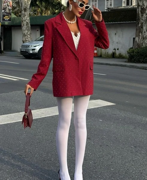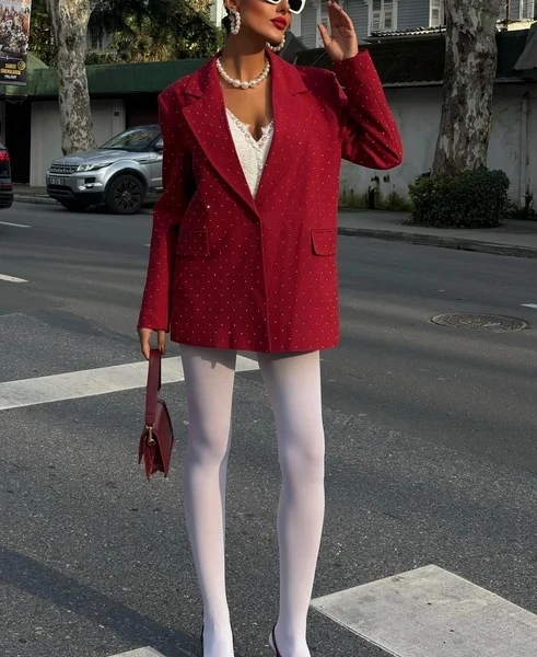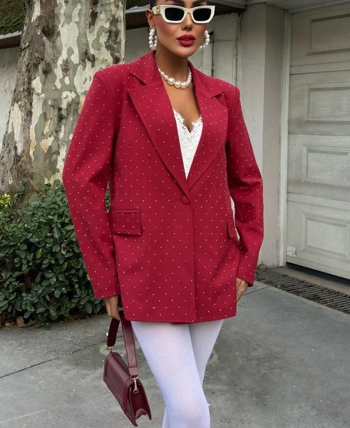 Элегантный женский пиджак насыщенного бордового оттенка с утонченными декоративными элементами. Классический крой с лацканами и застёжкой спереди подчёркивает фигуру и придаёт образу изысканность. Отличный выбор как для делового стиля, так и для торжественных мероприятий. Современный и универсальный элемент гардероба.