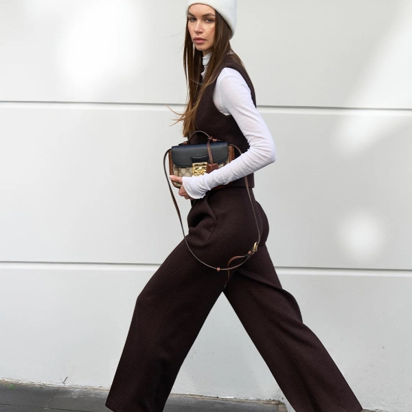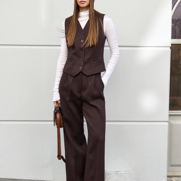 impresii despre Коричневый комплект – брюки палаццо и жилет