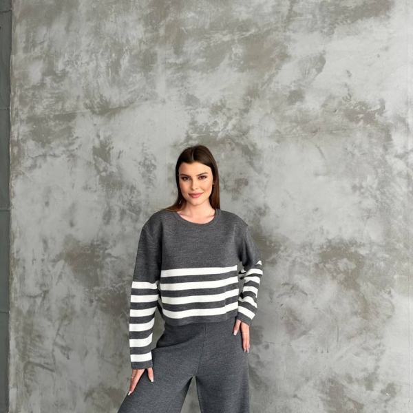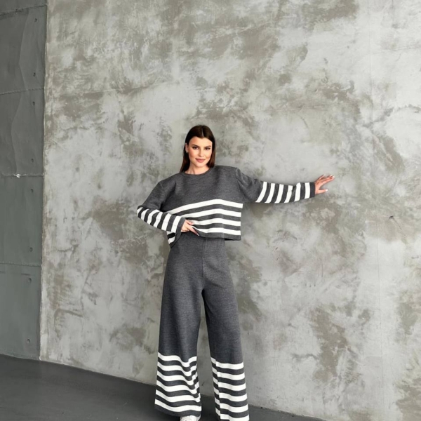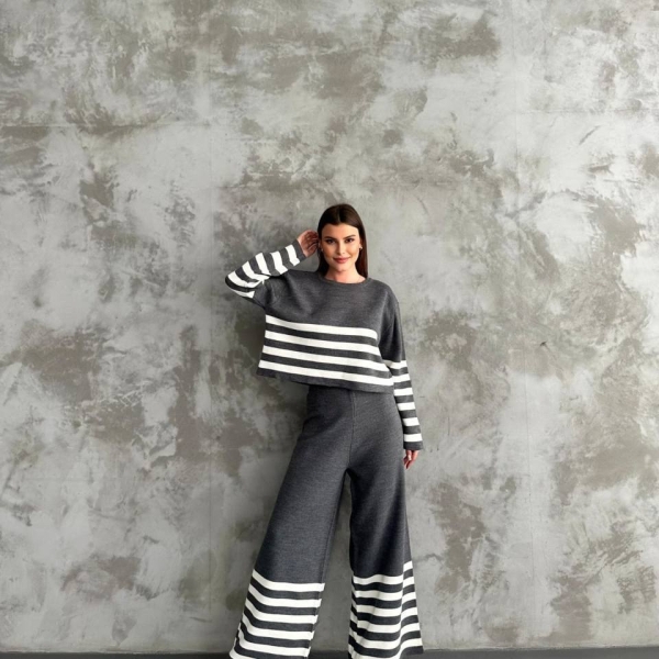 This two-piece striped knit set combines casual style and comfort. Featuring a cropped long-sleeve top and wide-leg pants, it’s a perfect everyday outfit for relaxed or urban looks. The stripes create a modern contrast, while the soft knit fabric ensures all-day ease. Stylish, breathable, and effortlessly cool.