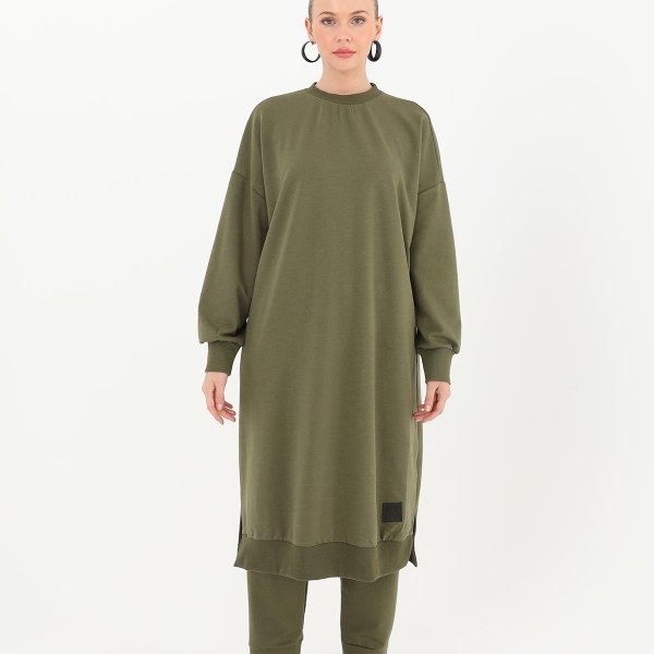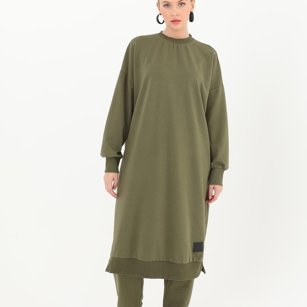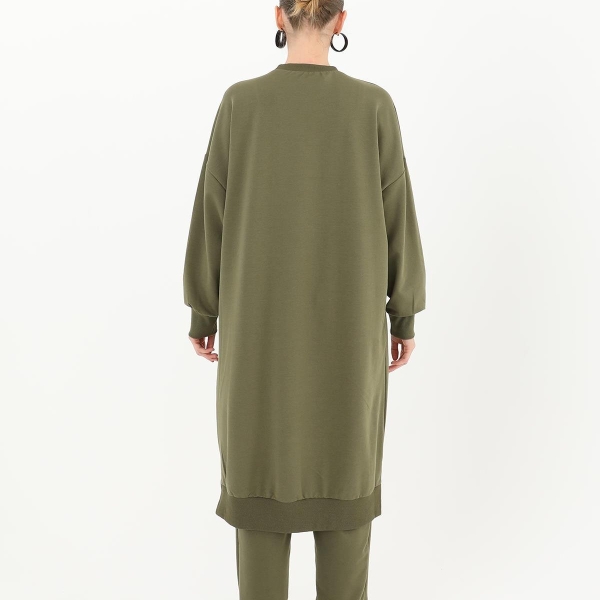 5. Женская длинная туника цвета хаки из хлопка