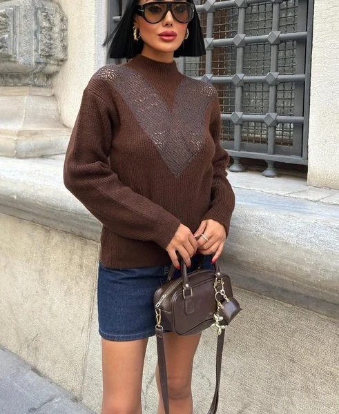 impresii despre Коричневый Вязаный Свитер с Ажурной Вставкой в Форме V