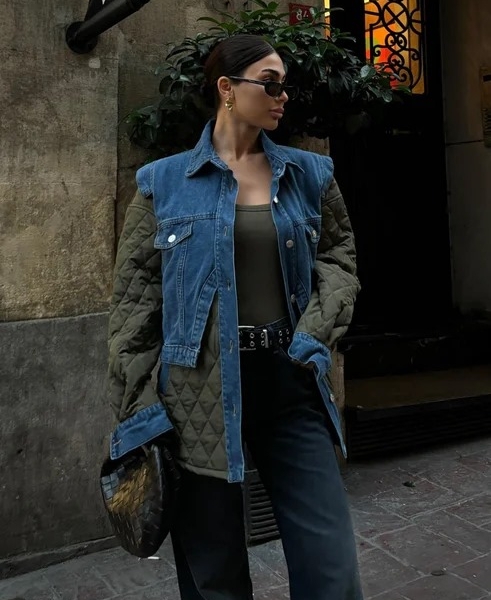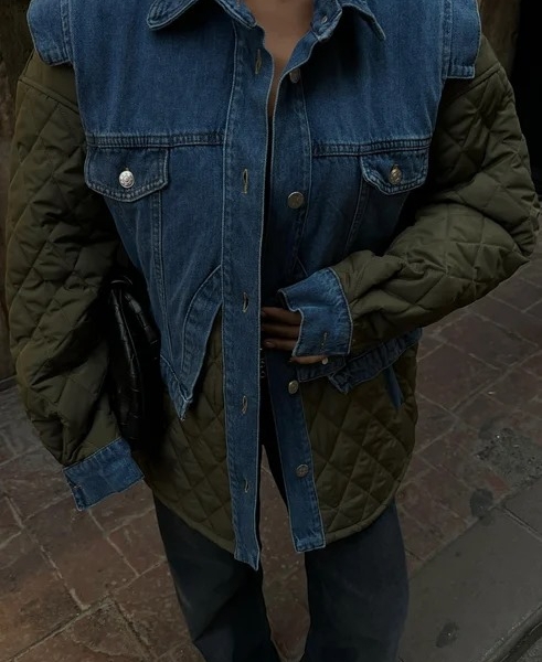 Эта стильная куртка — идеальный выбор для прохладного сезона. Сочетает в себе уютную стёжку и эффектные джинсовые вставки, создавая модный контраст. Объёмный крой с подчёркнутыми плечами и удобными рукавами обеспечивает комфорт и делает образ запоминающимся. Застёжка на кнопках, передние карманы и универсальный стиль — всё, что нужно для эффектного городского образа.