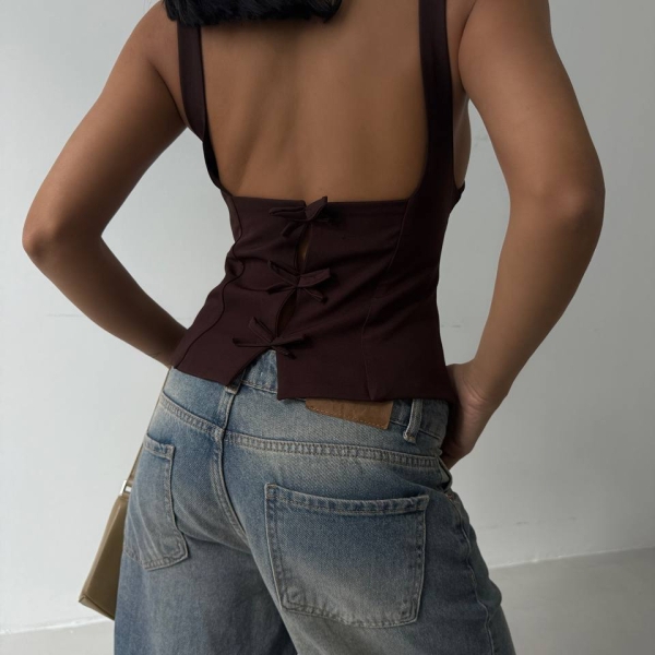 Informatii despre produs Шоколадный Топ с Открытой Спиной и Бантиками