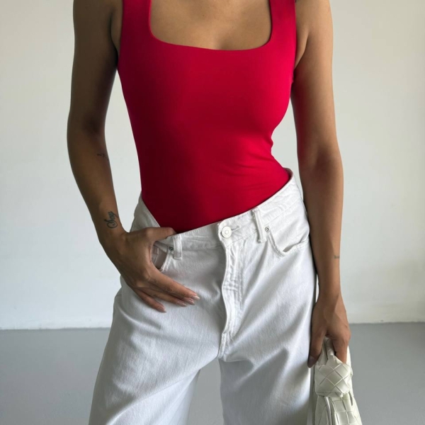 5. Body Roșu cu Decolteu Pătrat