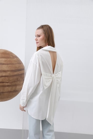 Informatii despre produs Белая рубашка с бантом сзади из хлопка