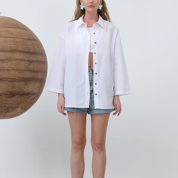 Informatii despre produs Белая оверсайз рубашка из хлопка с пуговицами