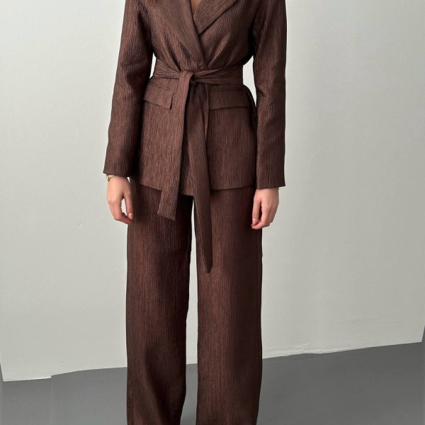 Informatii despre Set Maro cu Pantaloni și Sacou cu Cordon