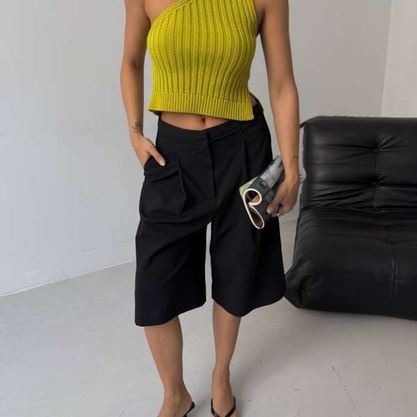 Асимметричный топ на одно плечо из эластичного вязаного материала с рельефной текстурой. Яркий оттенок лайм-желтого придаёт образу свежесть и стиль. Идеально сочетается как с джинсами, так и с юбками.