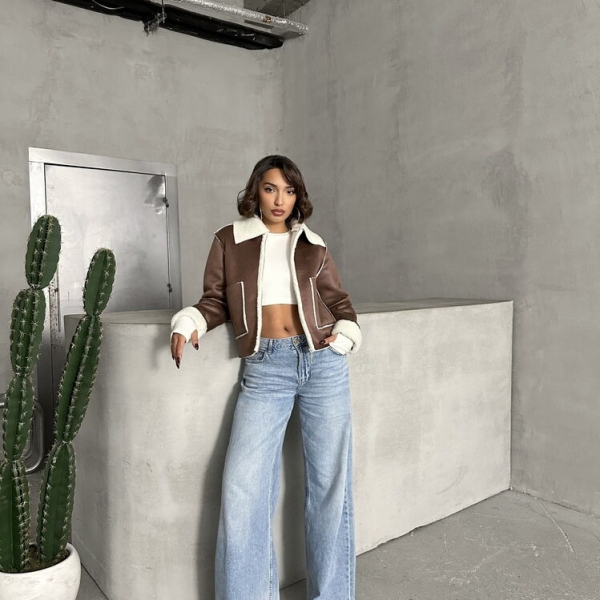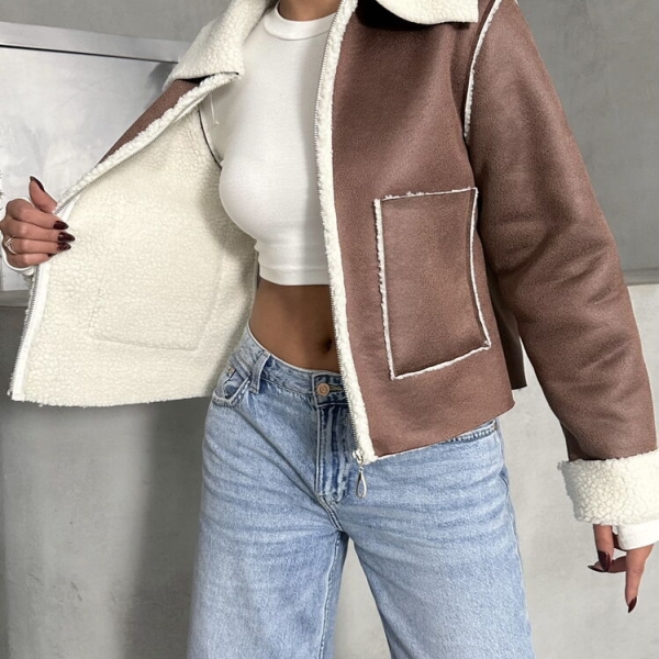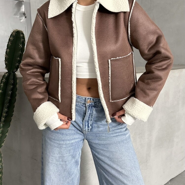 Informatii despre Geacă maro-crem din piele întoarsă cu căptușeală