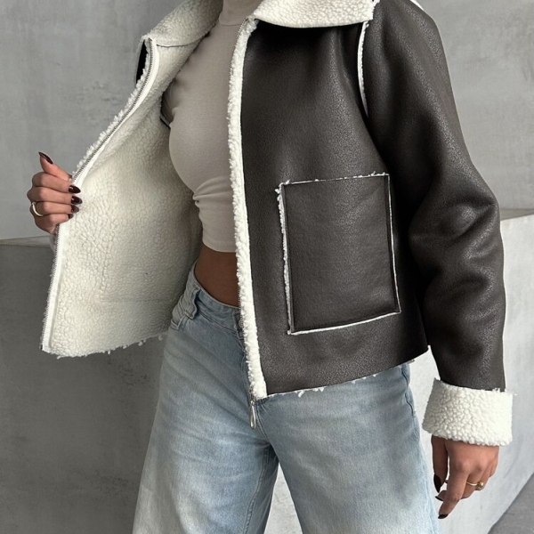 Impresii despre Geacă neagră din piele întoarsă cu căptușeală