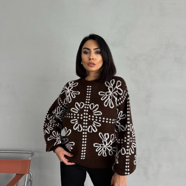 Informatii despre produs Вязаный коричневый свитер с узором снежинок