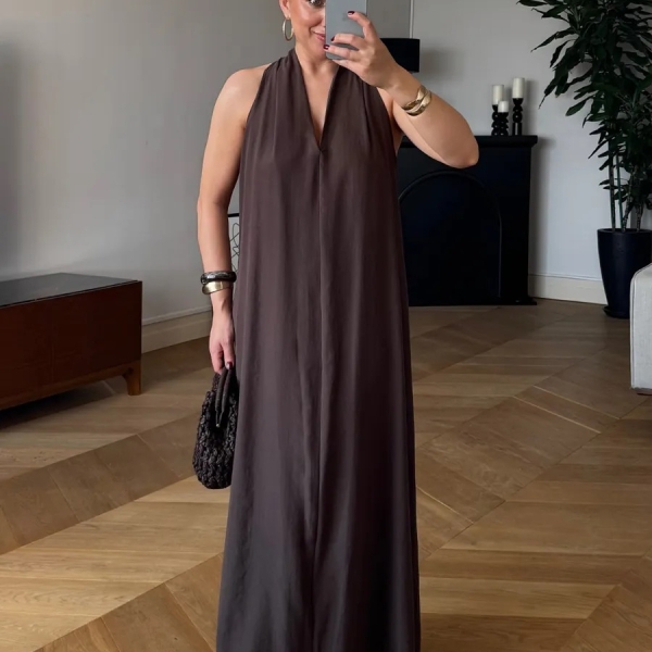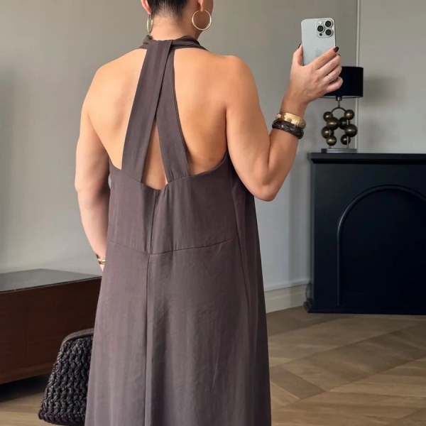 Эта лёгкая модель без рукавов с глубоким вырезом и открытой спиной создаёт утончённый и женственный образ. Свободный крой обеспечивает комфорт даже в самые жаркие дни. Идеально подойдёт для летних прогулок и мероприятий под открытым небом.
