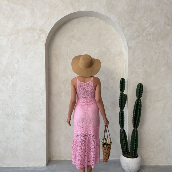 Informatii despre produs Розовое кружевное миди-платье на бретелях