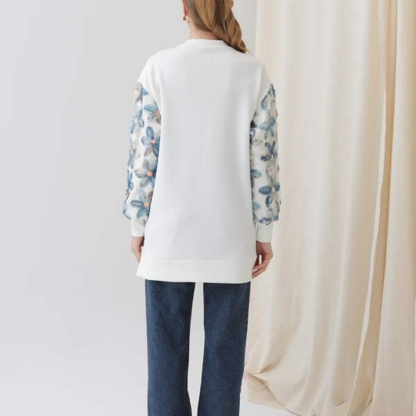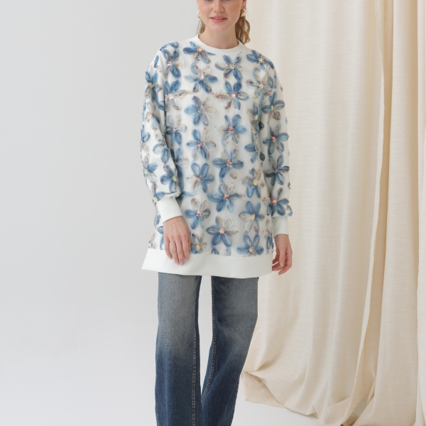 Informatii despre produs Бело-синяя туника с 3D цветочным принтом